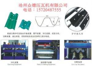 沧州众德机械有限公司生产高速护栏成型设备.高速护栏板成型机采用牌坊,增加机器的牢固性;采用齿轮箱传动,机器运行;产品运用于各种护栏,高速公路护栏、畜牧业养殖场护栏等。高速护栏板生产的产品表面光滑,颜色鲜亮,适用广泛。