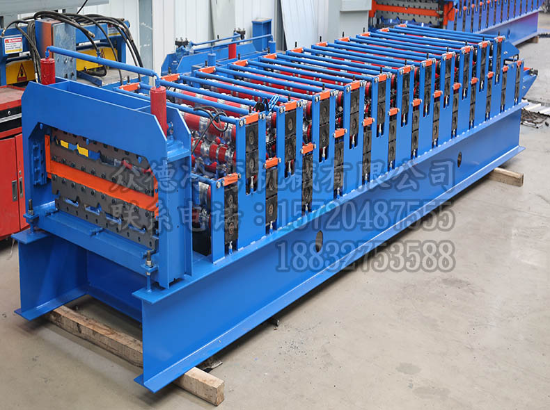 描述:840/900双层彩钢压瓦机设备,是一款一机双型号的钢板压型设备,可生产钢结构建筑房屋常用的900型墙面板和840型屋顶板。